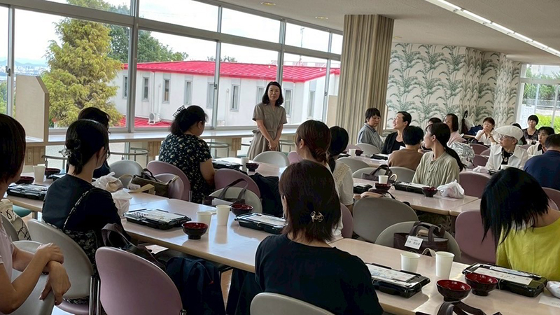 懇談会は、食堂にて開催しました。お弁当に舌鼓を打ちながら、近況報告とビンゴゲームを楽しみ、あっという間に時間が過ぎてしまいました。