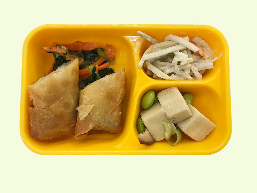 白ごはん 春巻き チンゲン菜の中華炒め 高野煮 ごぼうサラダ