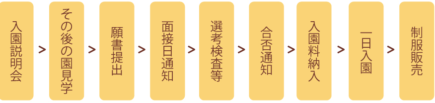 | 10.面談(二次) | 随時(先着順)入園希望者の面談を受付けます。 なお、充足した時点で終了いたします。 |