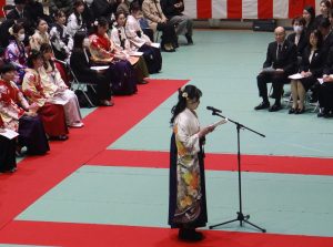 式辞で、秋山学長は災害や国際情勢の時事にふれながら未来のエッセンシャルワーカーとして活躍する卒業生にエールを送られました。